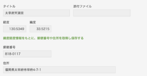 写真を添付するとフィールドに緯度と経度を取得するプラグインです。スマートフォンから現地の写真を撮影し、kintoneに保存するだけで位置が取得でき地図に表示することが可能です。